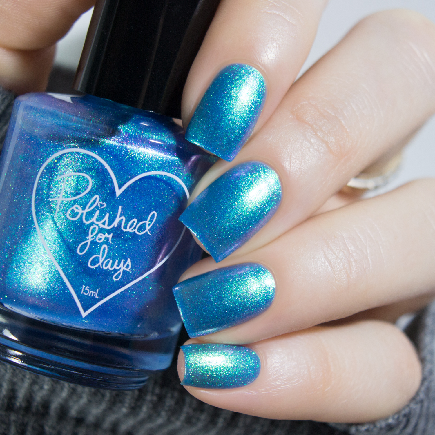 Tink - a sheer bright blue base, packed with green to purple shifting iridescent micro flakes.