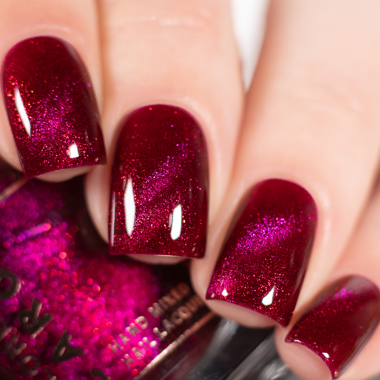 A deep shimmery magenta with magnetic effect that shifts to pink, gold,